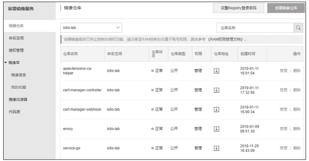阿里云镜像服务地址:https://cr.console.aliyun.com/ ,如下操作均在这个链接的Web上进行。