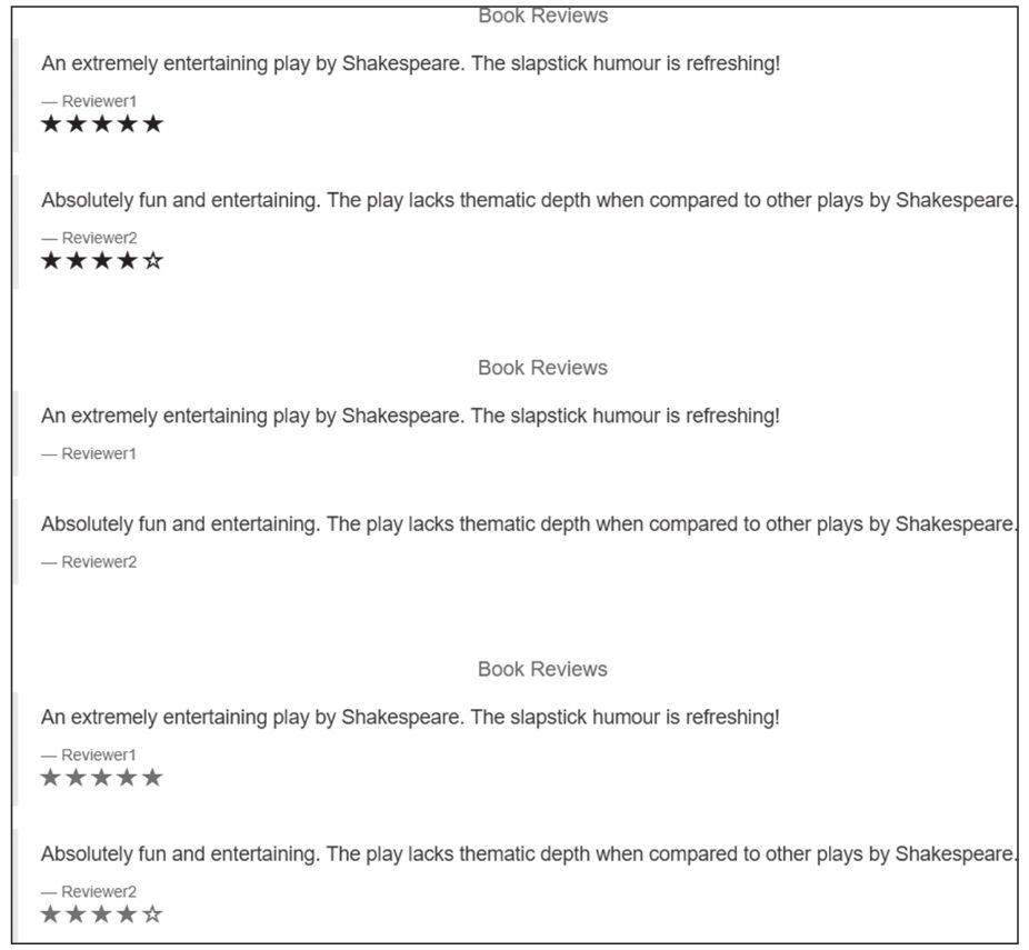 7)使用浏览器访问。使用浏览器访问http://11.11.11.111:31380/productpage ,多次刷新将可以看到如图5-1所示的不同的评价界面。