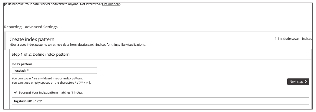 填入logstash-*匹配ElasticSearch中存储的日志索引,如图11-5所示。