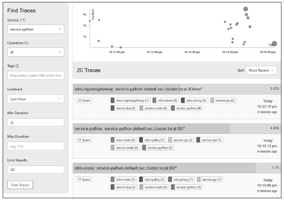 查询service-python服务响应时间大于3s的请求调用链,如图11-10所示。
