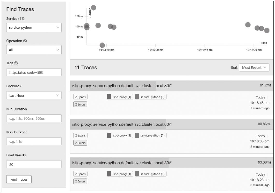 查询service-python服务响应码为503请求调用链,如图11-11所示。
